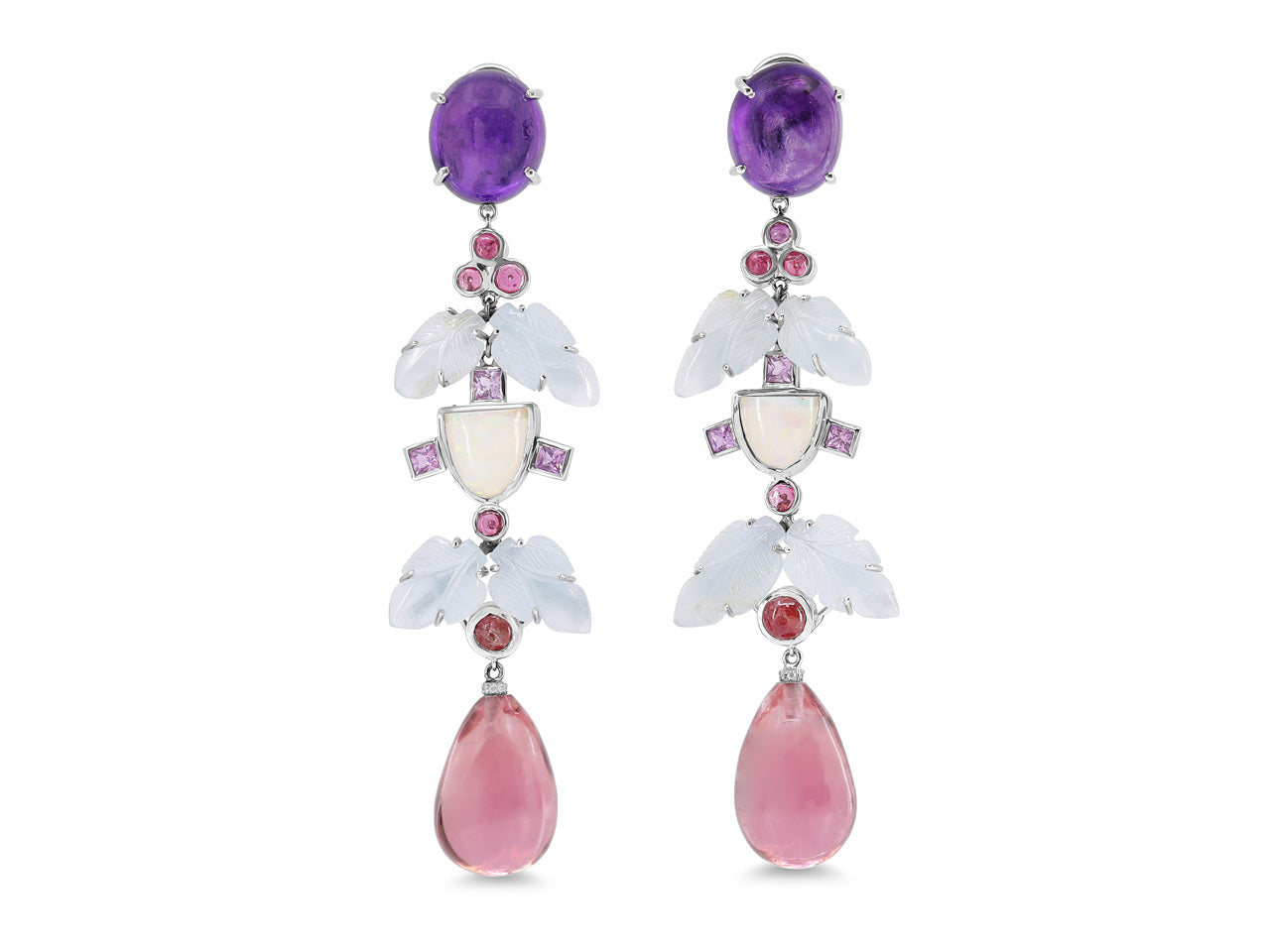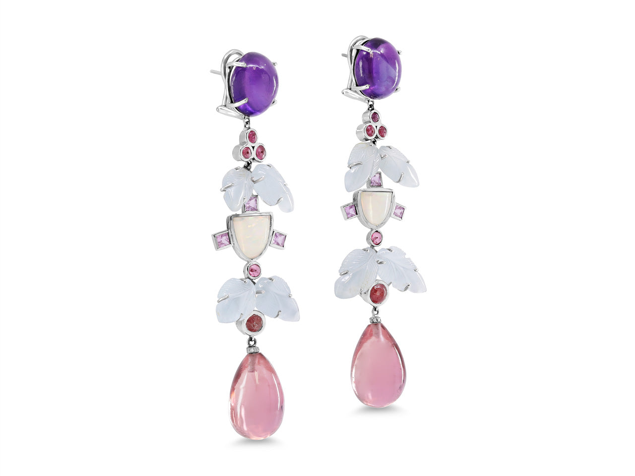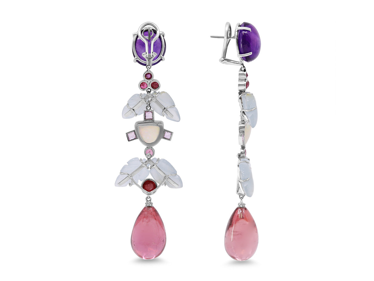 Amethyst, Aquamarine & Tourmaline Earrings in 18K White Gold