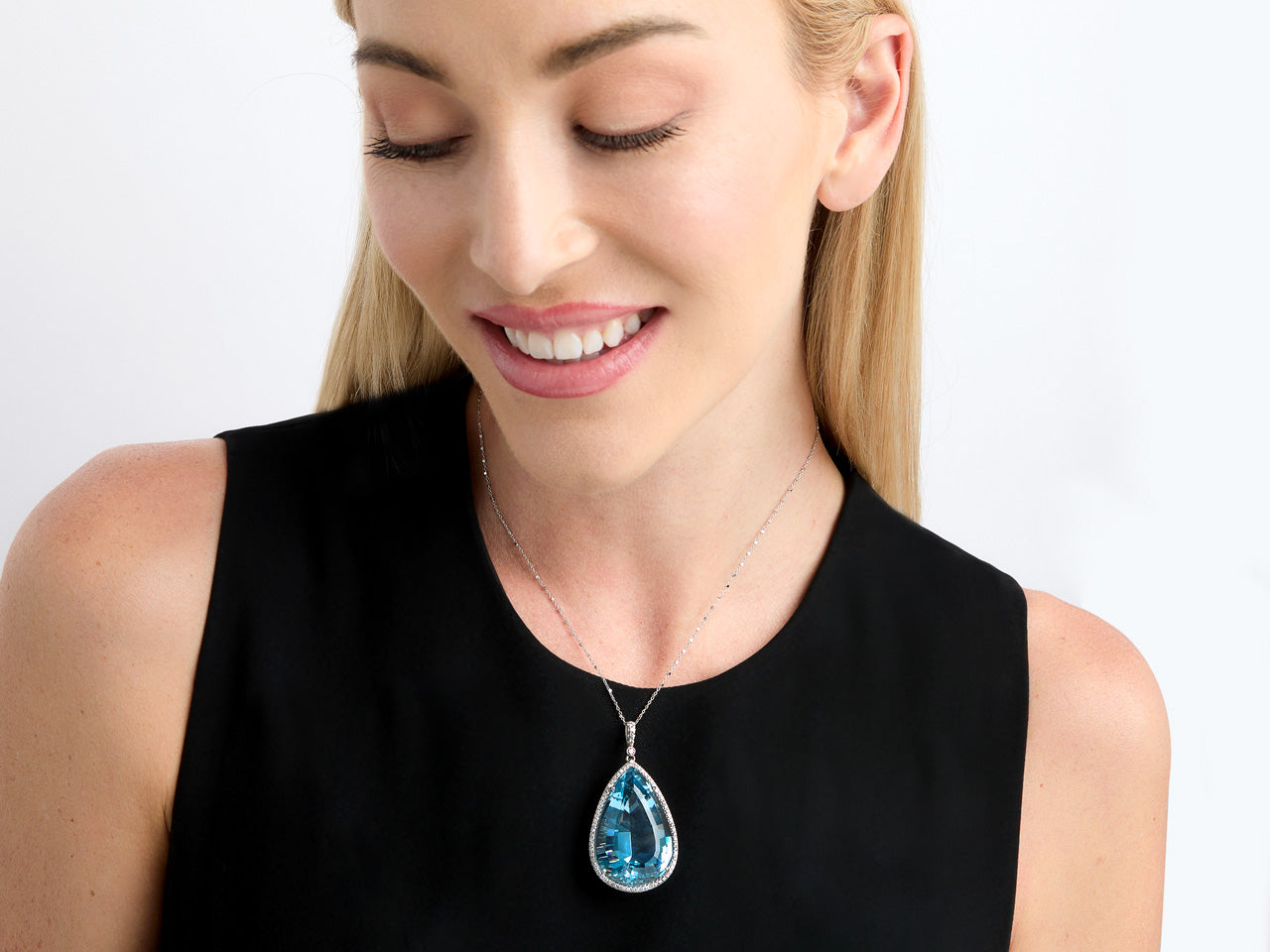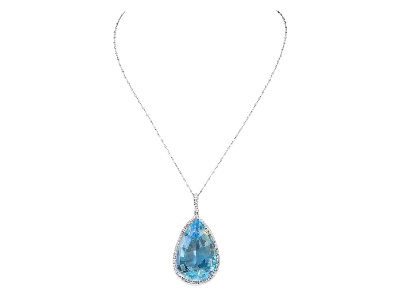 Pear Shape Aquamarine, 87.89 carats, Pendant in 18K White Gold