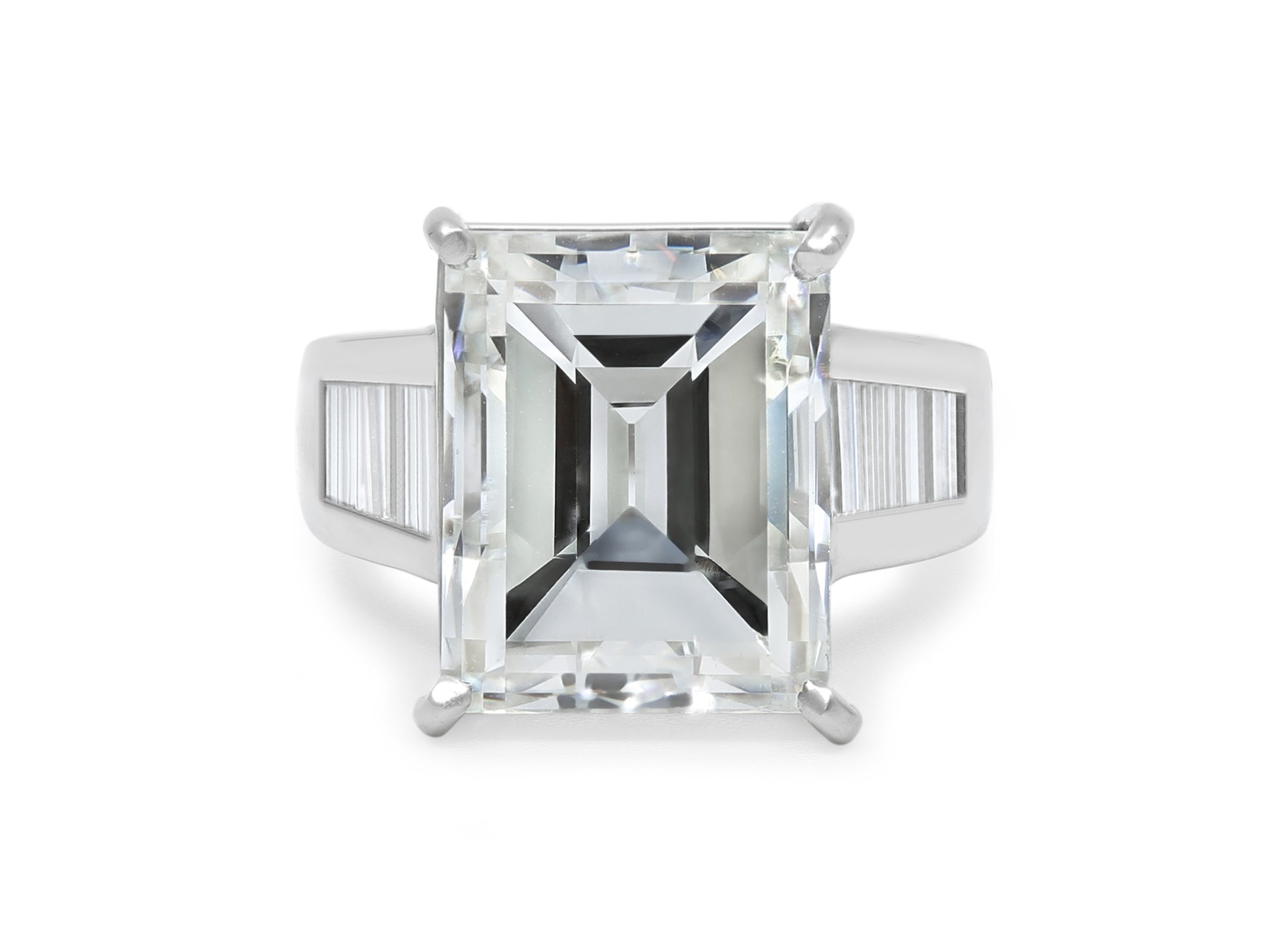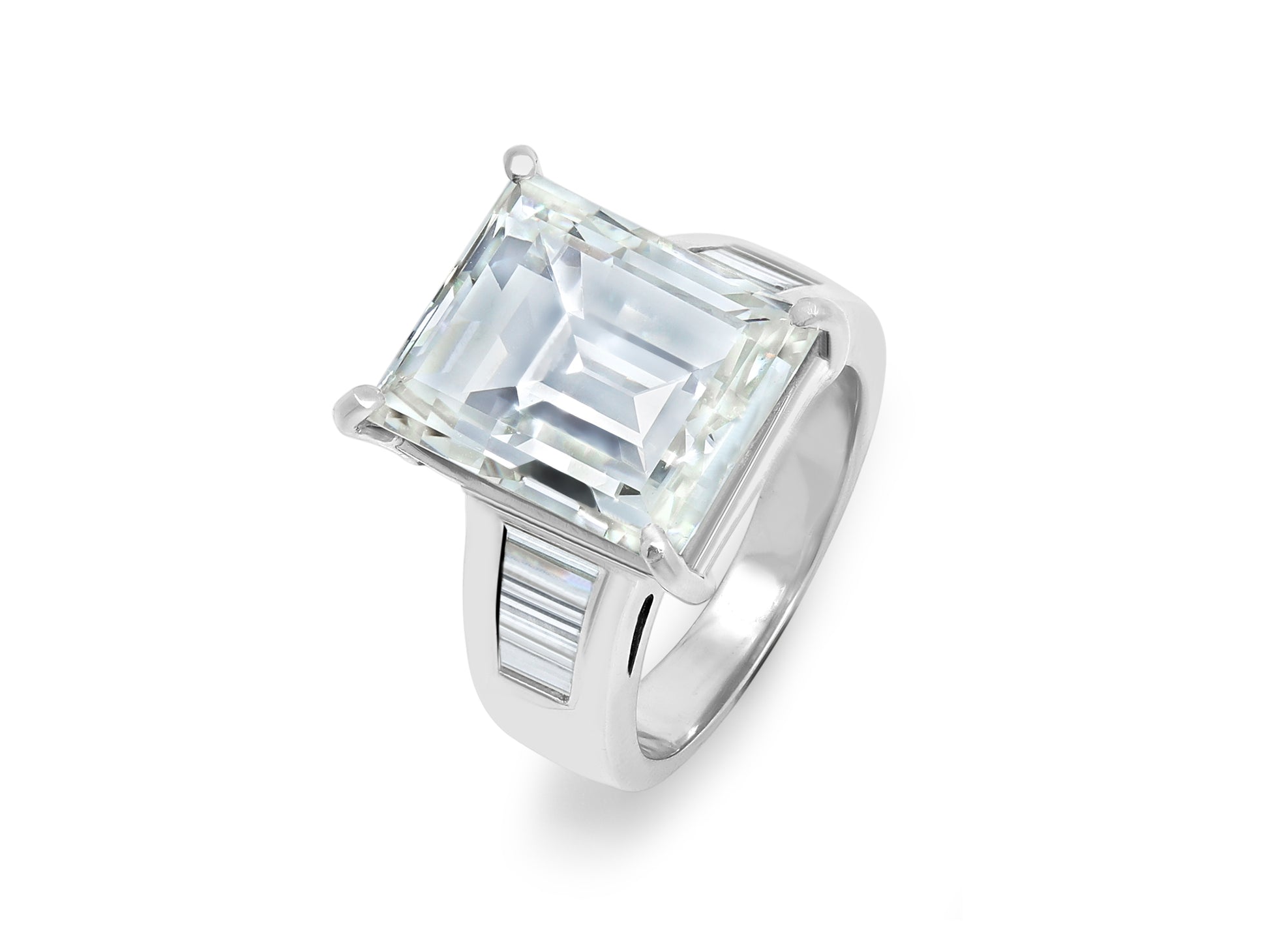 Step Cut Diamond, 12.43 Carats, Ring in 18K White Gold