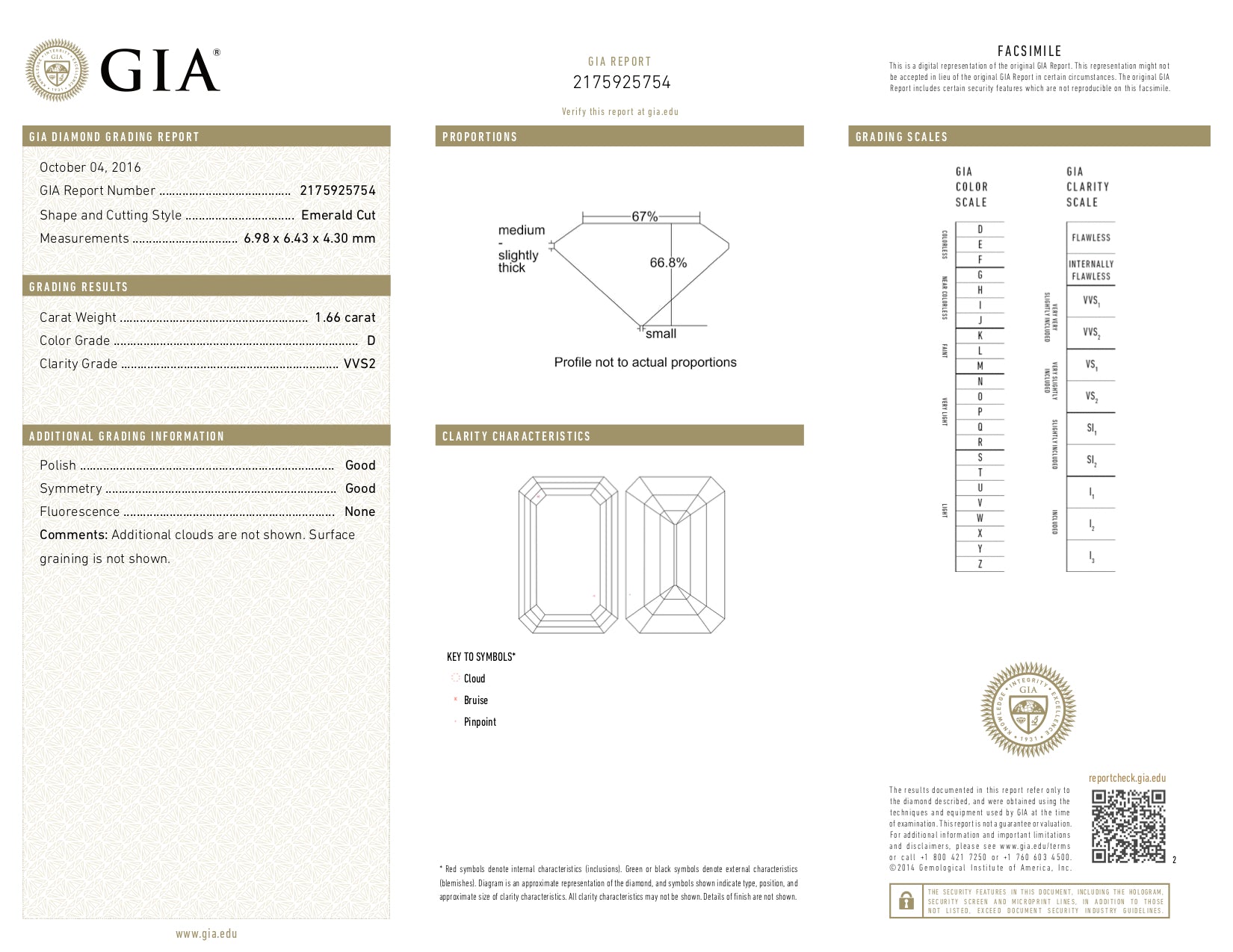 Gemstone: Diamond: 1.66 carats, D/VVS2. GIA Report #2175925754