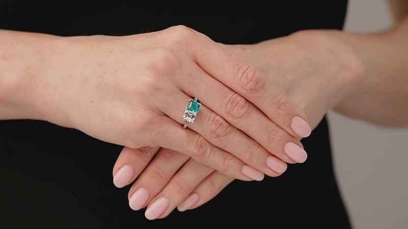 Colombian Emerald & Diamond Twin Ring, in Platinum