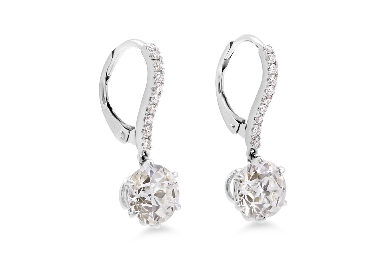 Old European Cut Diamond Drop Earrings in 18K White Gold