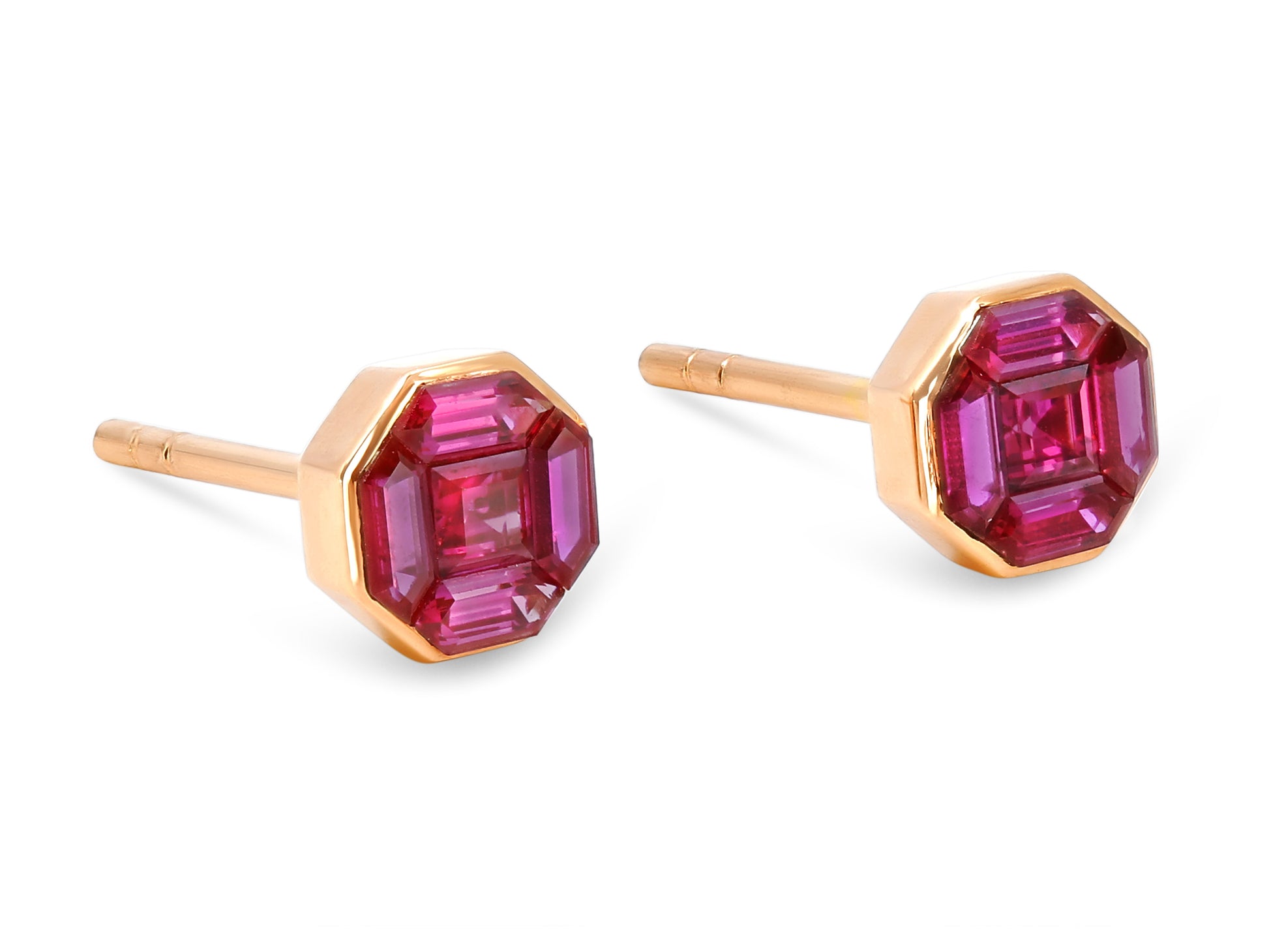 Illusion Ruby Studs in 16K Red Gold
