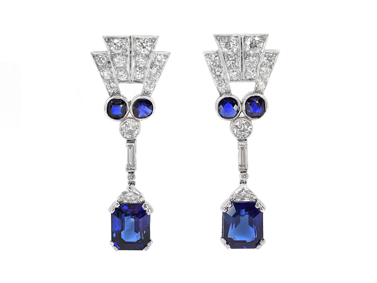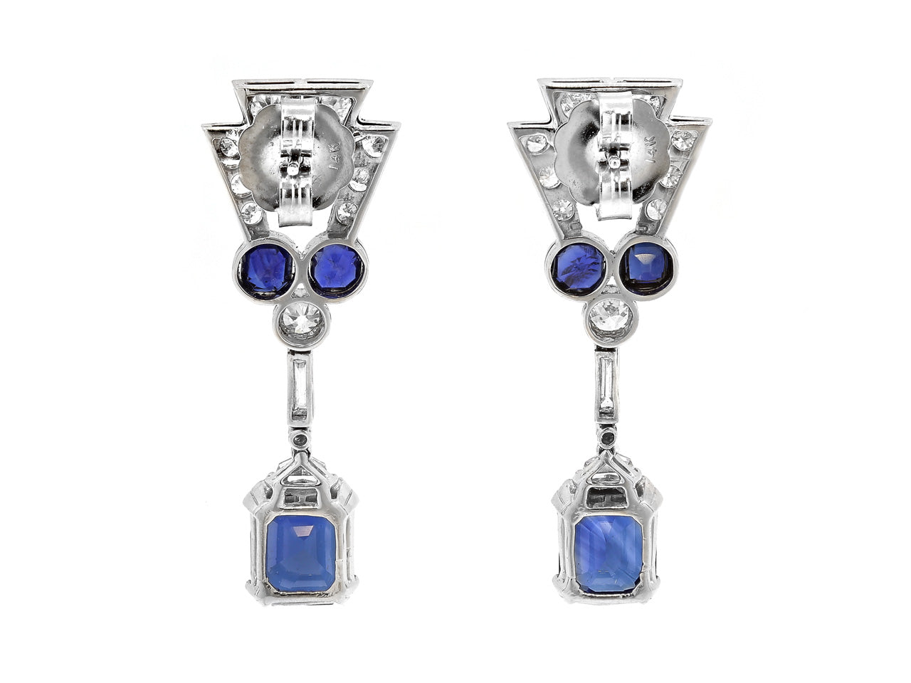 Madagascar Sapphire Art Deco Style Earrings in Platinum