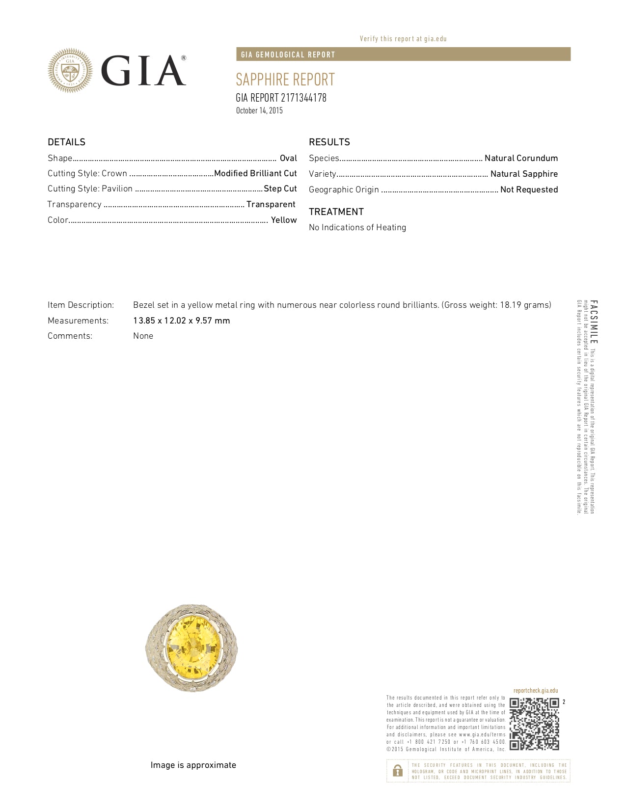 Gemstone: Sapphire: 13.56 carats, GIA Report #2171344178