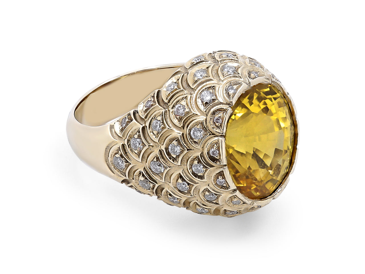 Yellow Sapphire, 13.56 carats, Ring in 18K Yellow Gold