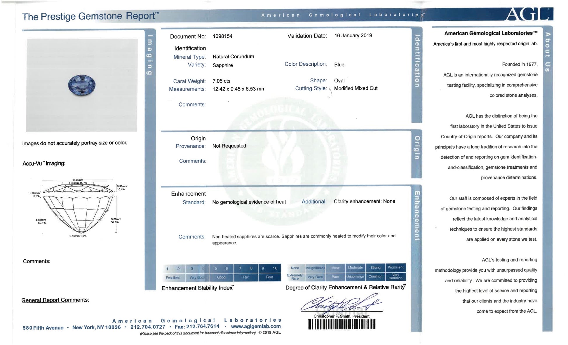 Gemstone: Blue Sapphire: 7.05 carats. AGL Report #1098154