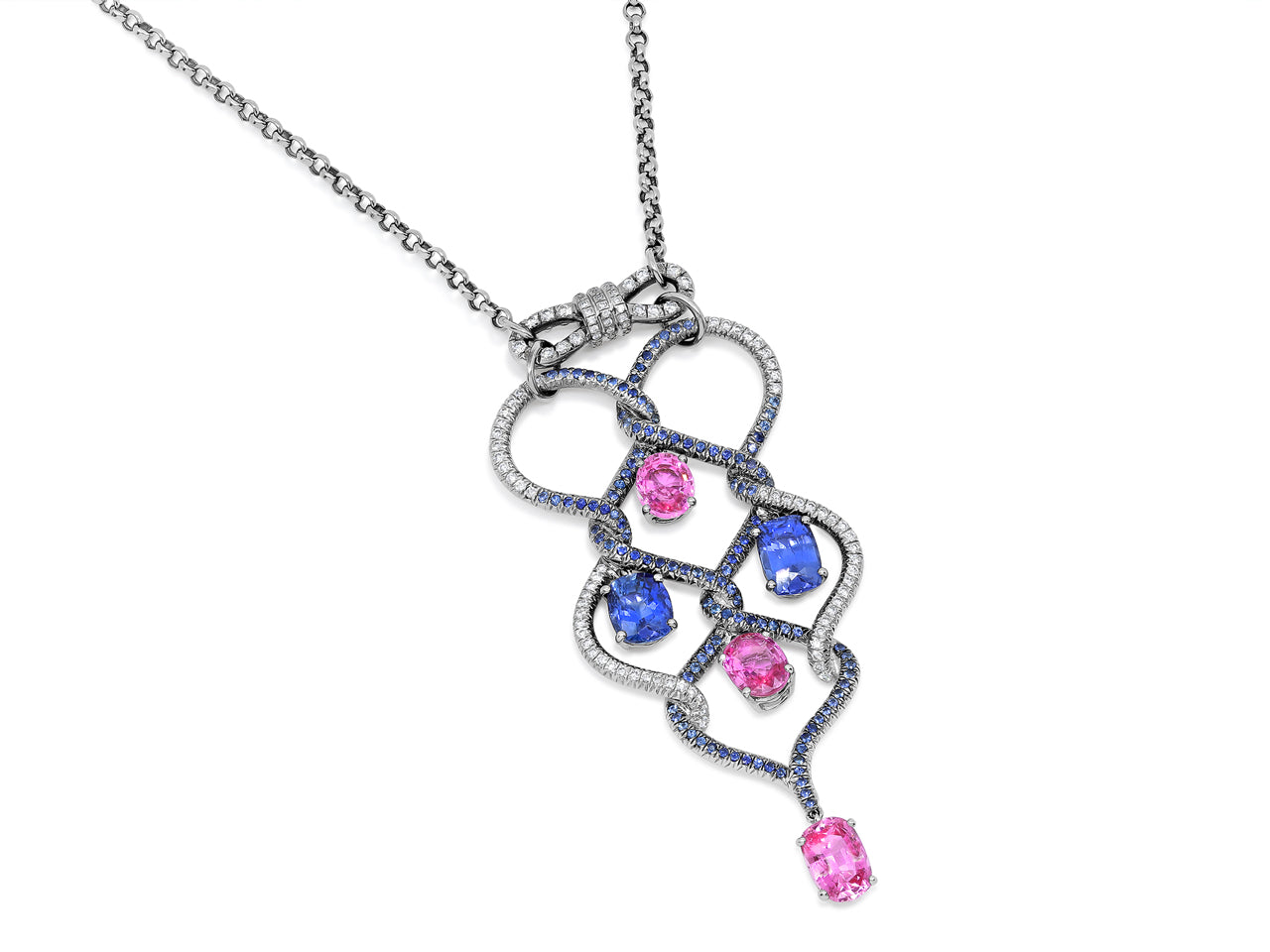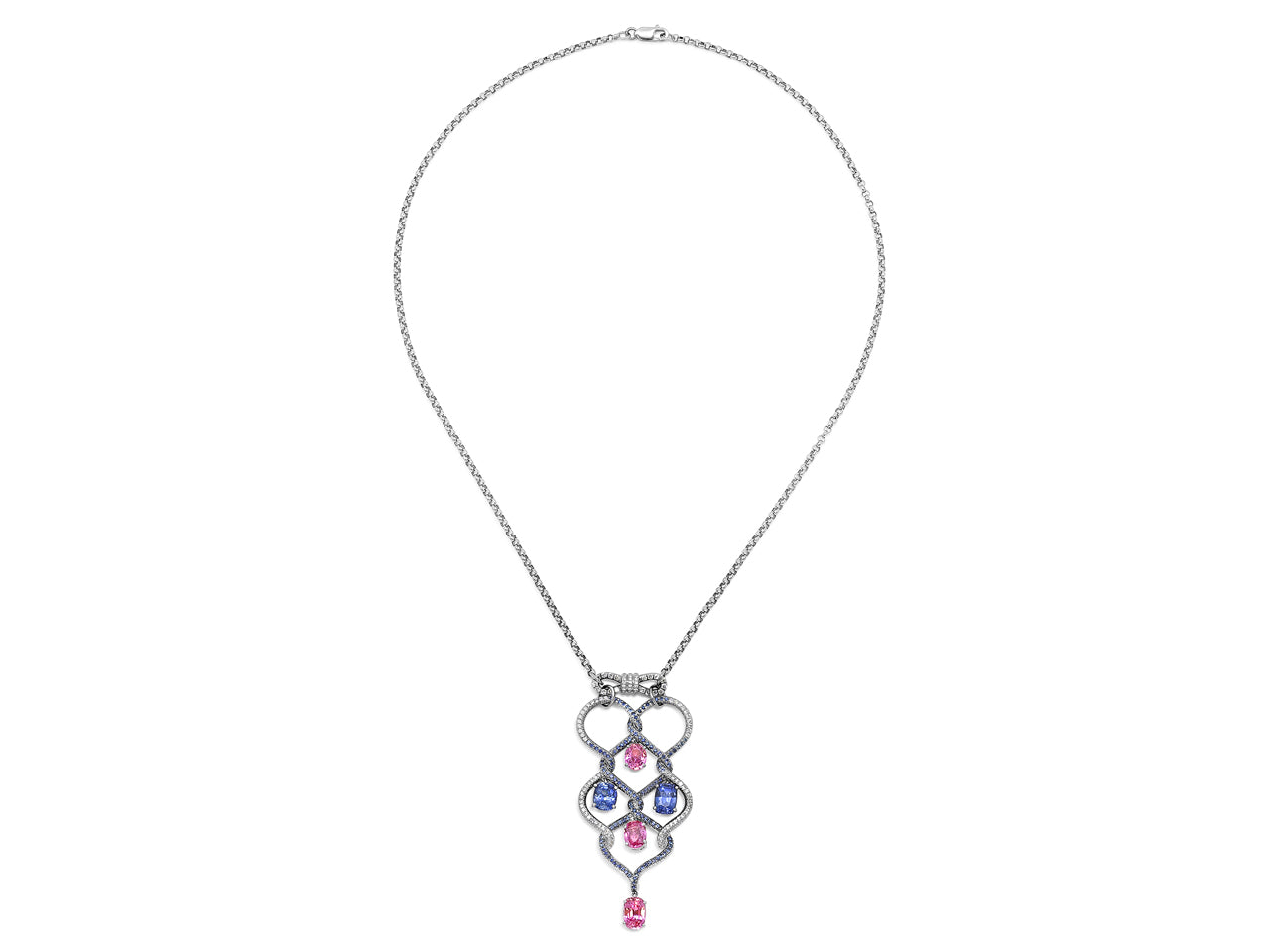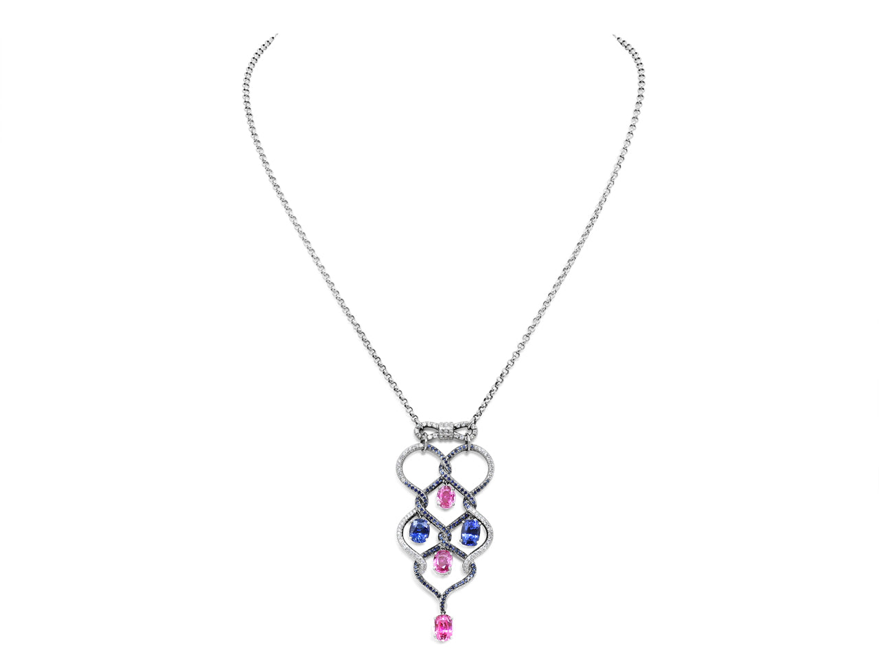 Pink & Blue Sapphire Pendant in 18K White Gold by Patrick Mauboussin