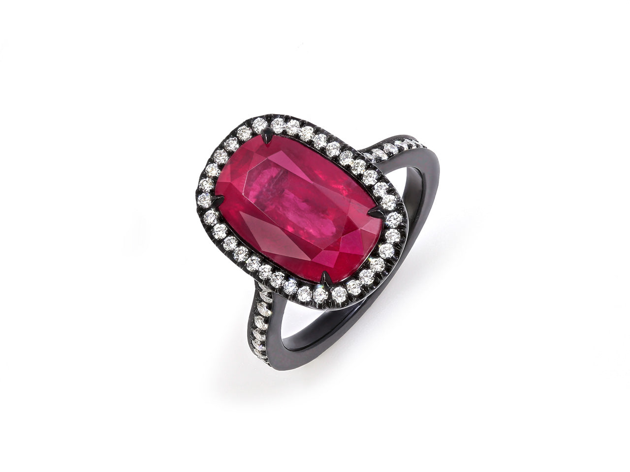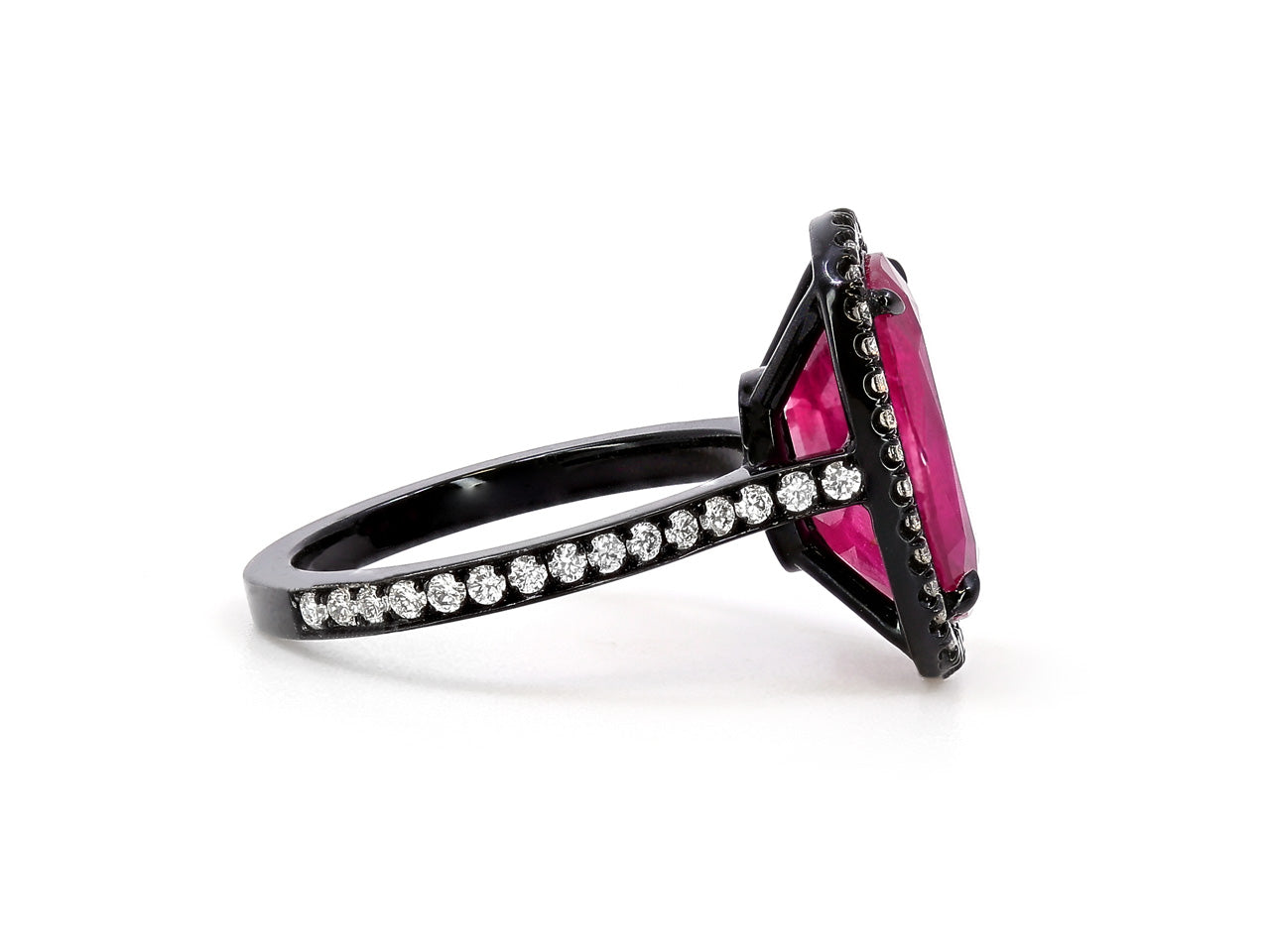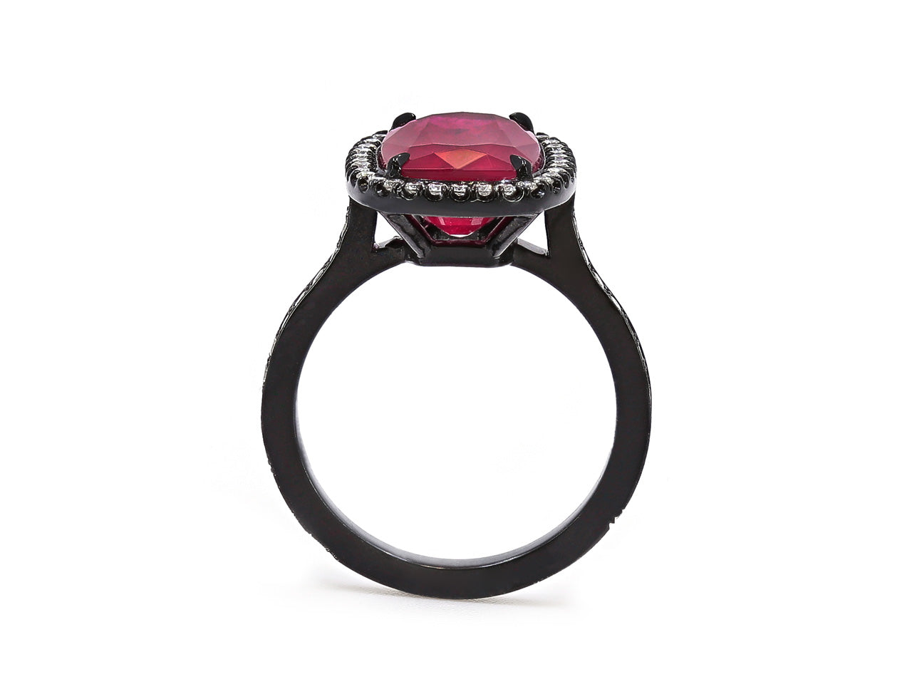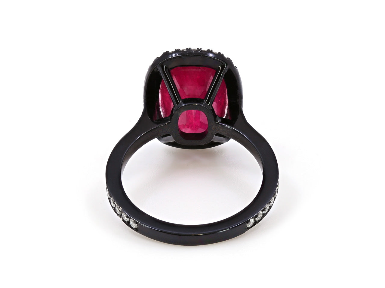Ruby, 6.25 carats, & Diamond Ring in 18K Blackened Gold