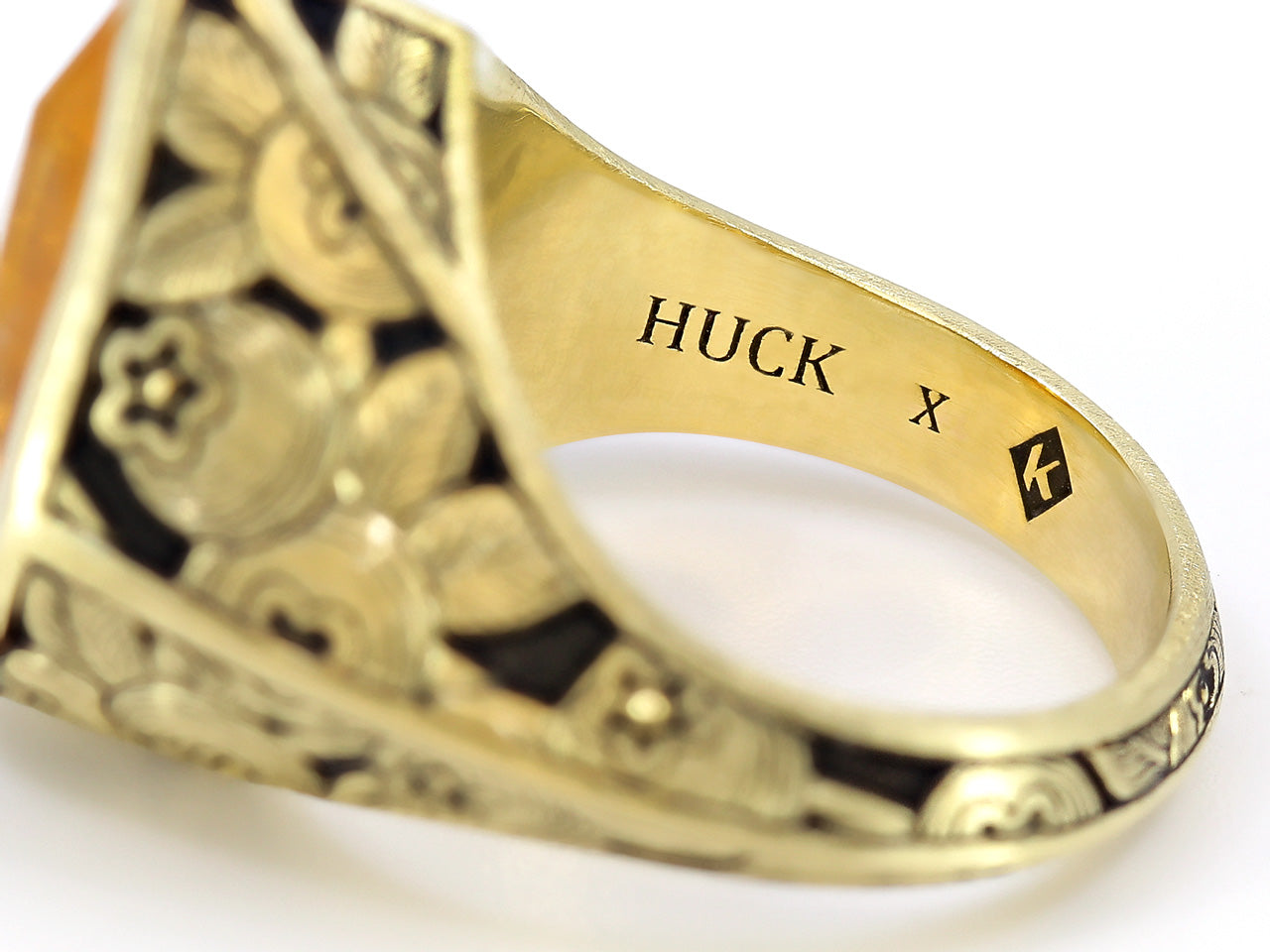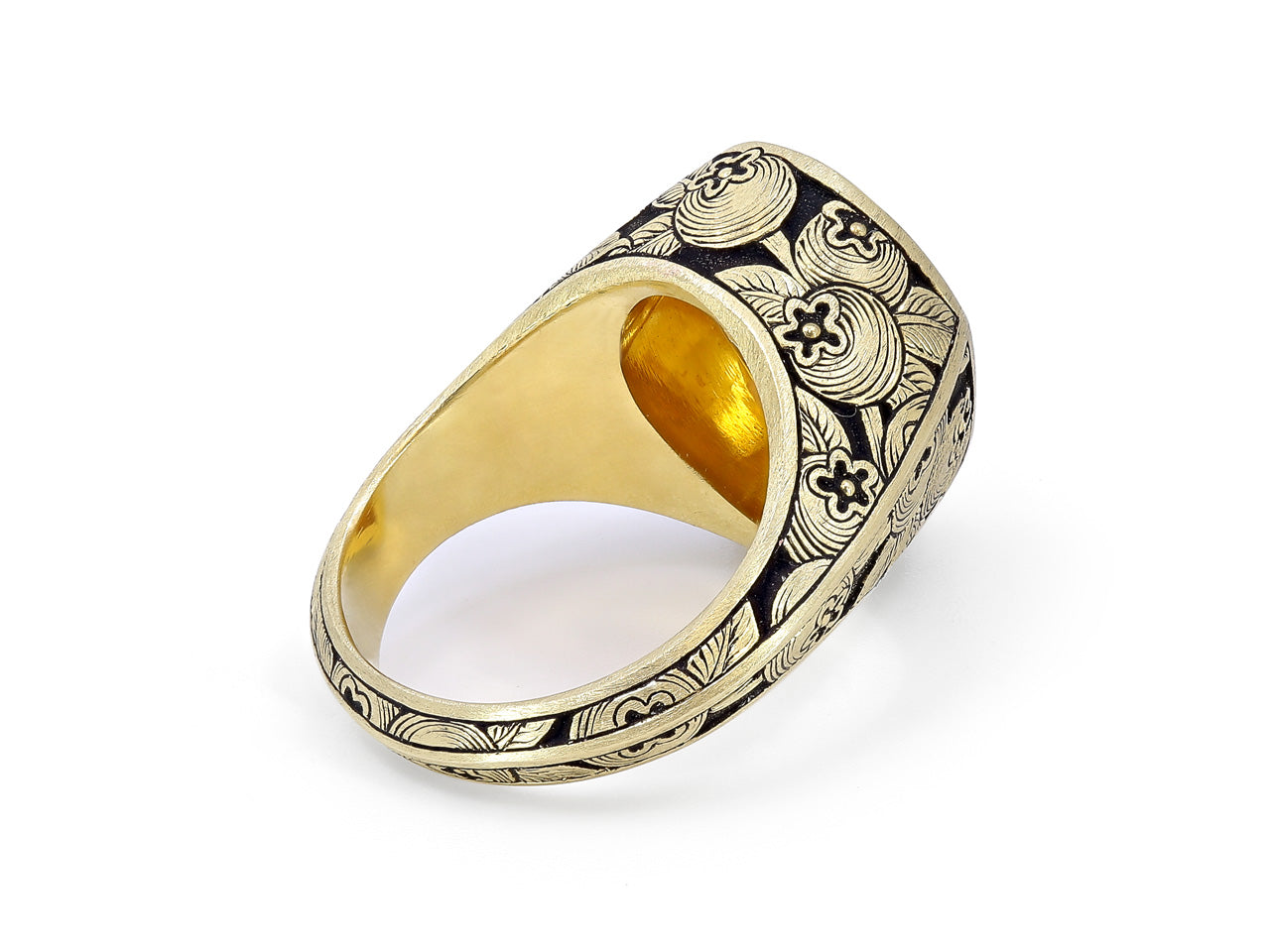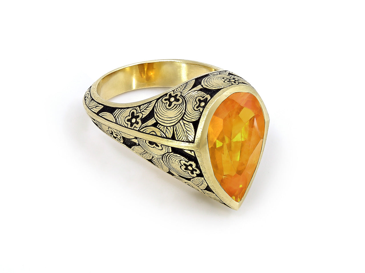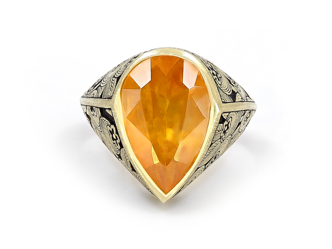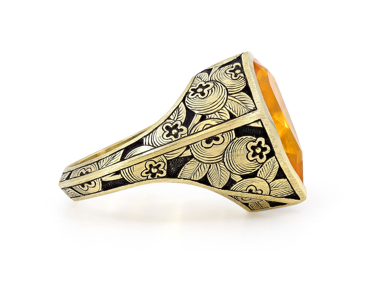 Orange Sapphire, 10.20 Carats, Engraved Cocktail Ring in 18K Yellow Gold