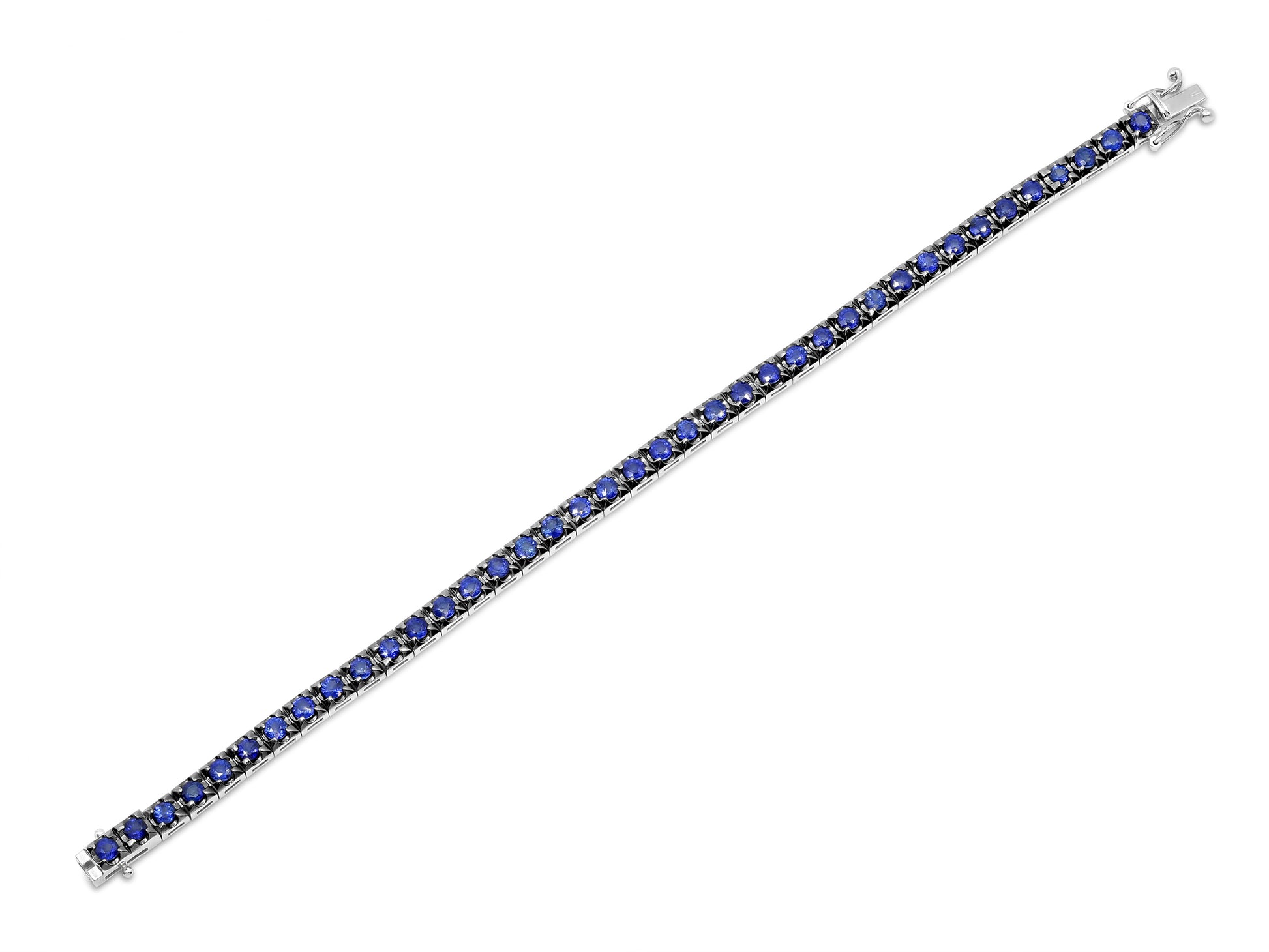 An 18K blackened gold line bracelet set with thirty-nine sapphires.