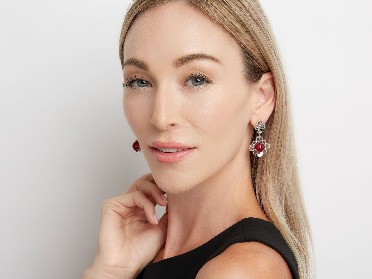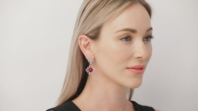 Sugarloaf Burma Ruby & Rose Cut Diamond Earrings in Platinum & 18K White Gold