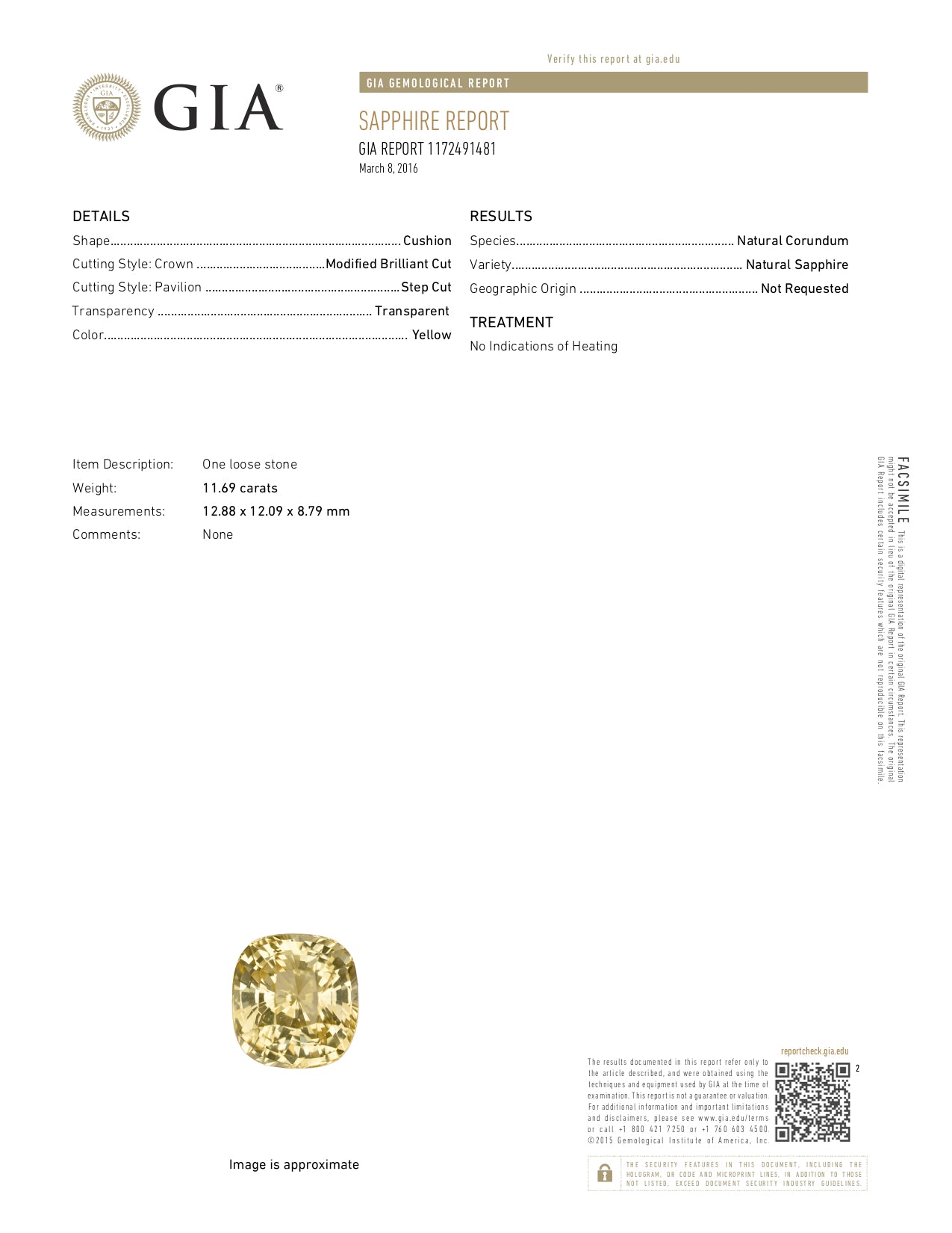 Gemstone: Yellow Sapphire: 11.69 carats. GIA Report #1172491481