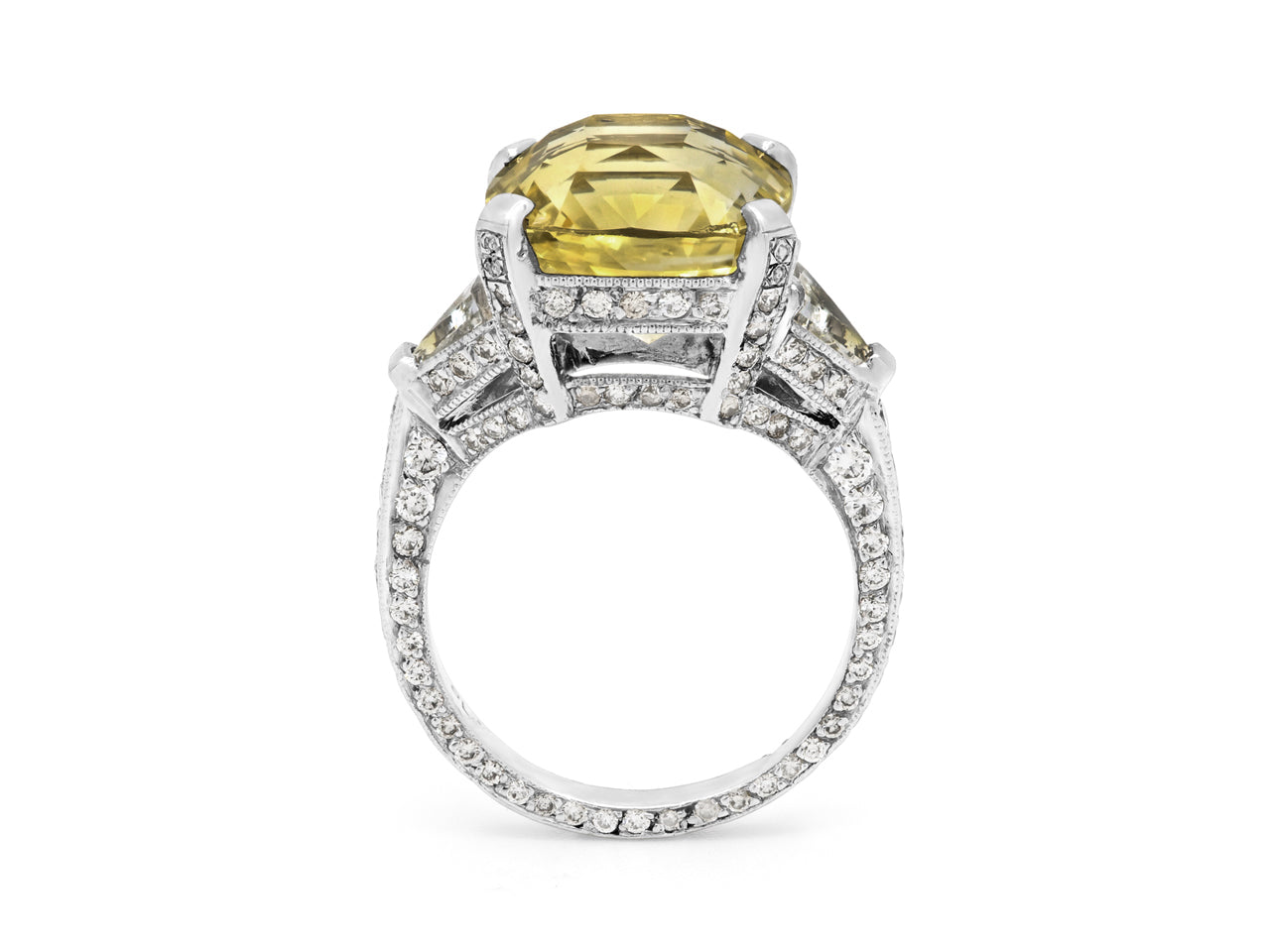 Yellow Sapphire, 11.69 carats, and Diamond Ring in Platinum