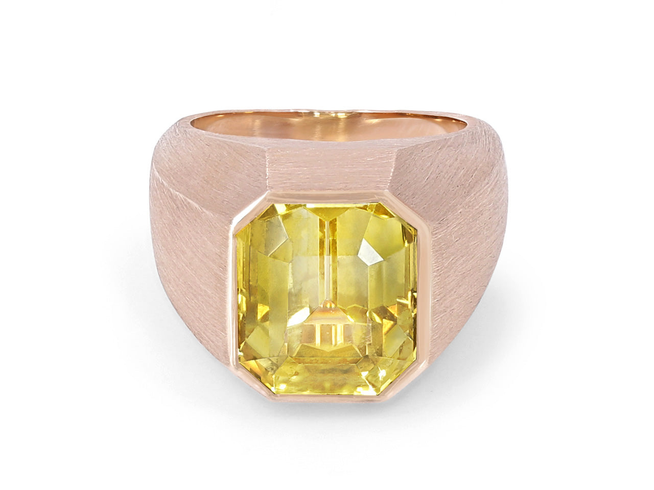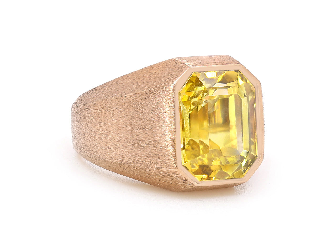 Yellow Sapphire, 12.79 Carats, Cocktail Ring in 18K Rose Gold